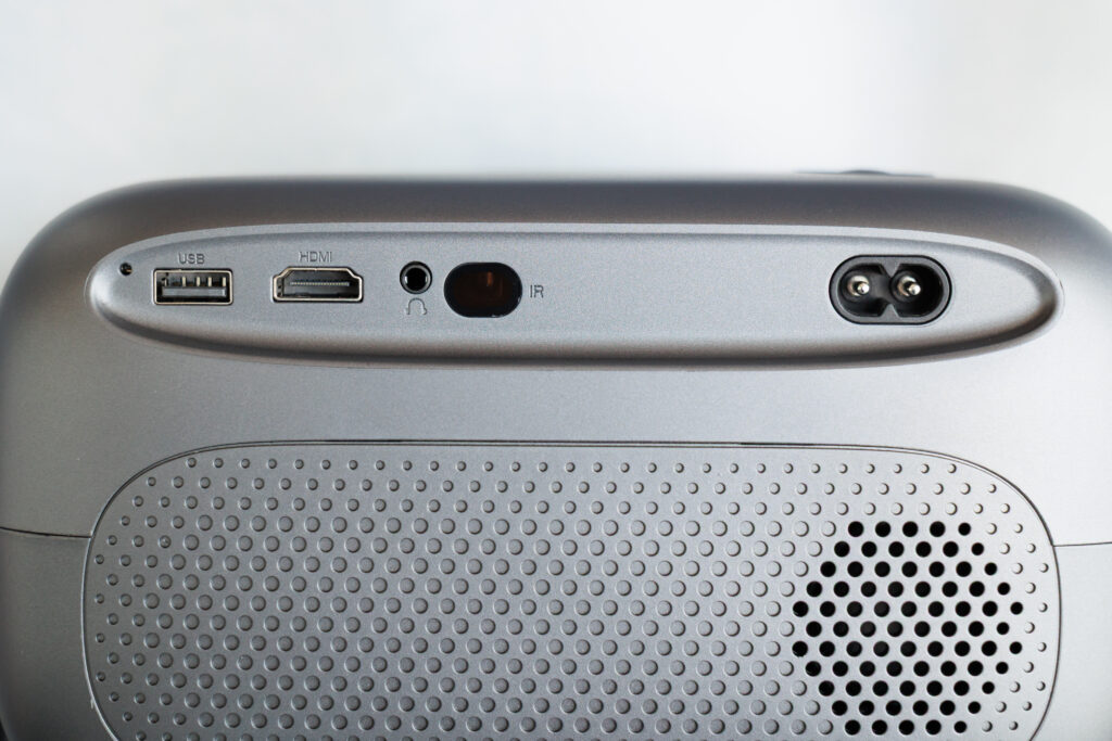 背面を見ると、電源コネクタ、3.5mmイヤホンジャック、HDMI、USBと、必要十分な接続端子が揃っています。正直なところ、HDMI入力が1系統のみというのは、複数の機器を繋ぎたい場合には切り替え機の追加が必要になります。この点は、購入前に知っておいた方が良いかもしれません。