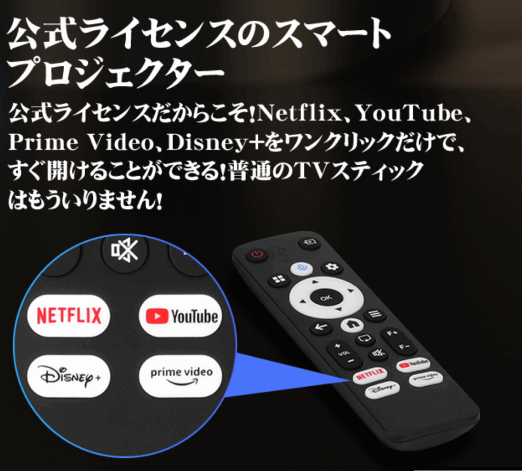 BETTDOW AC1060の一番の魅力は、Netflix公式認証を取得したブランドであることでした。これは単なるソフトウェア認証ではなく、Netflixが正式にライセンスしたブランドとして認定されているんです。以前使っていたプロジェクターでは、Netflixを見るためにFire TV Stickを別途購入する必要があり、配線も煩雑でした。