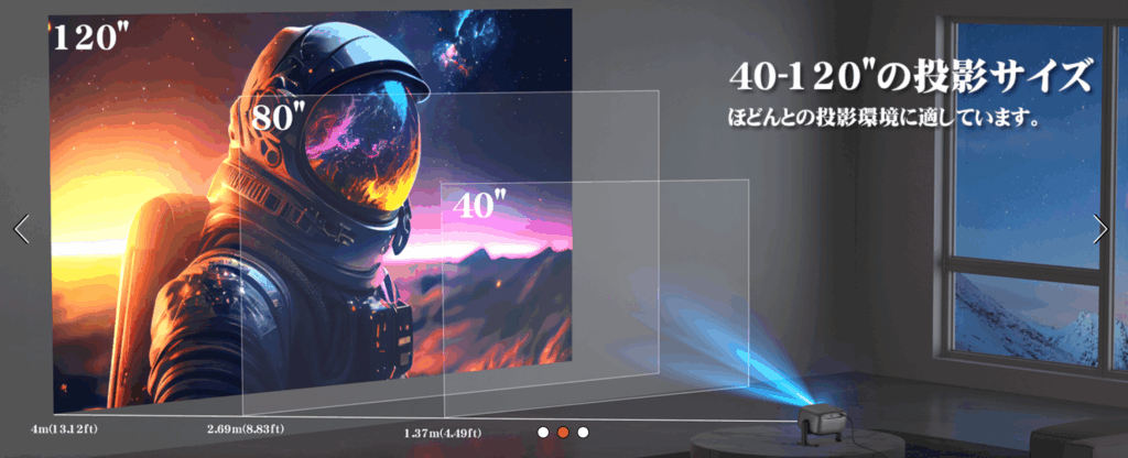 私の場合、19時の業務終了後、わずか30秒で80インチの大画面を実現できます。疲れた一日の終わりに、Netflix最新作を映画館品質で楽しめる贅沢は格別です。一人暮らしのワンルーム6畳でも、壁から約2.7mの距離があれば80インチ投影が可能でした。賃貸住宅でも工事不要で、壁掛けテレビ以上の迫力を手軽に実現できるのは、想像以上に便利だと感じています。